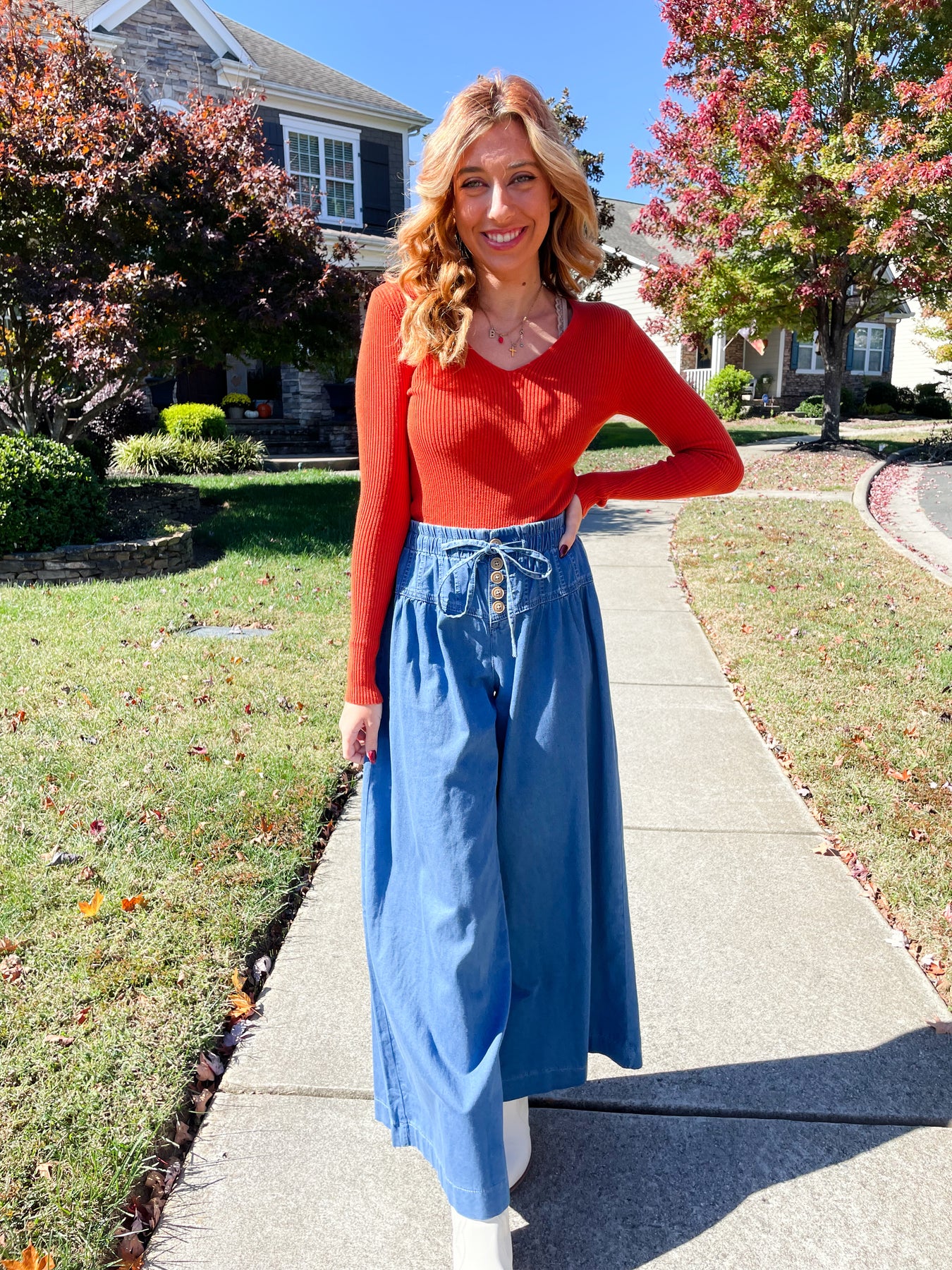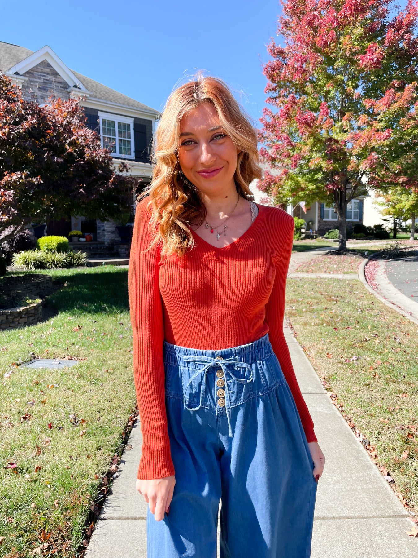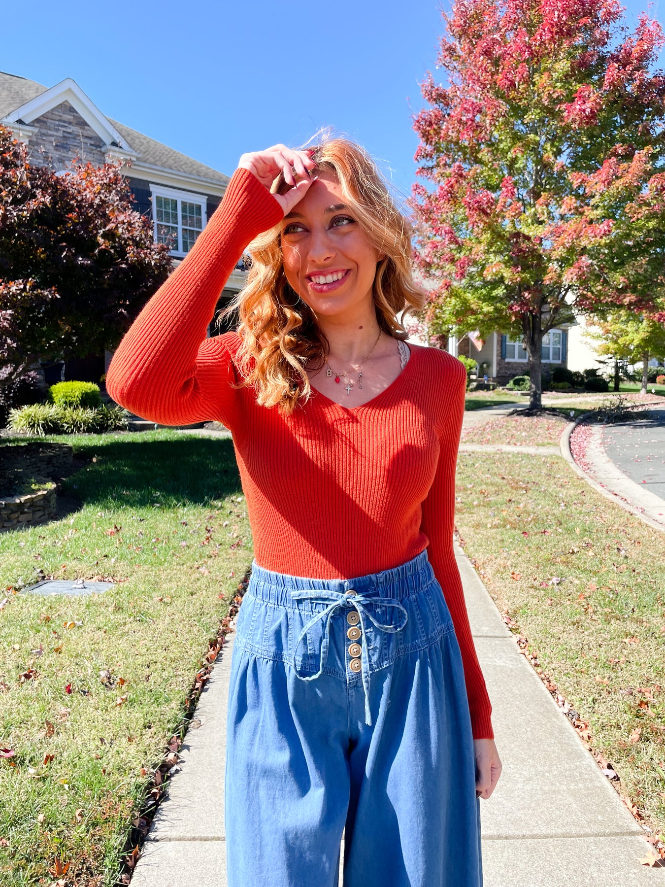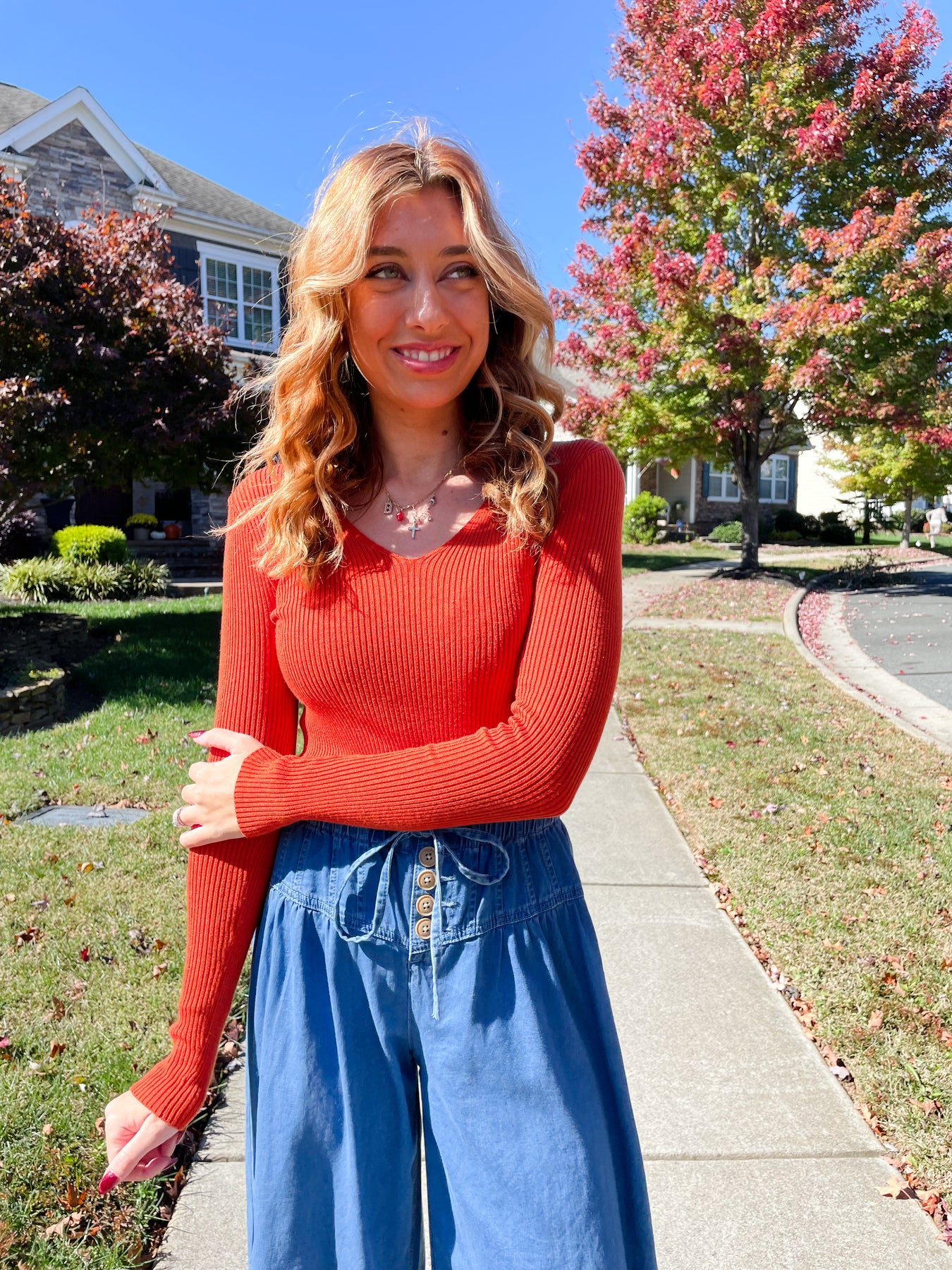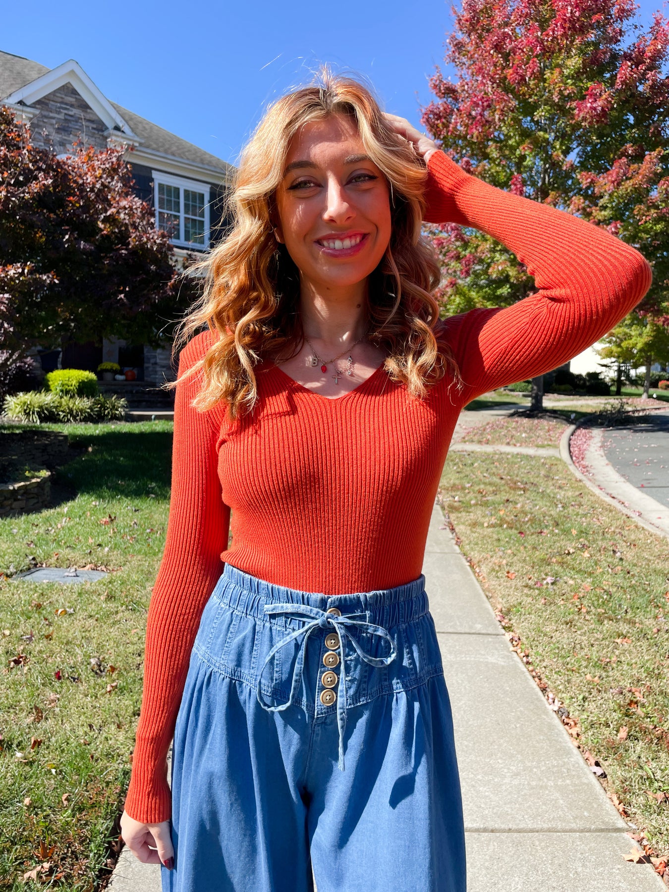 Celebrate the spirit of fall with the Pumpkin Spice Sweater. This ribbed knit sweater provides warmth and a comfortable stretch for a cozy fit, featuring charming pumpkin embroidery that captures the essence of autumn and holiday cheer. Its classic crew neck and long sleeves create a timeless seasonal look, making it an ideal choice for Thanksgiving, Halloween, and all your fall festivities. Stay stylish and snug as the seasons change with this festive wardrobe essential.