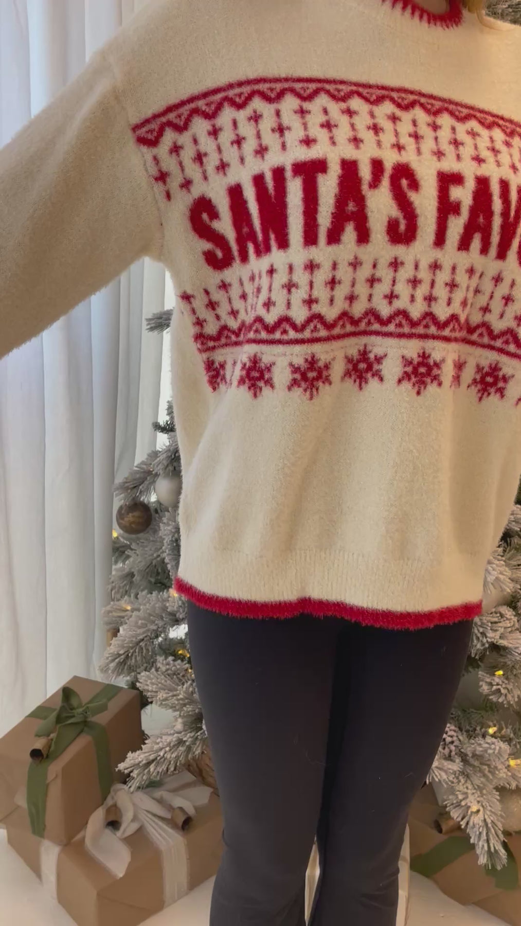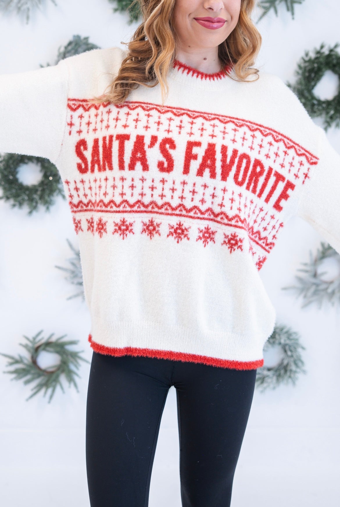 Embrace the magic of the season in this shimmering holiday essential. Our Santa's Favorite Sweater features eye-catching sparkle that catches the light with every movement, making you the star of any festive gathering. The luxe embellishments add a touch of glamour to your holiday wardrobe, while the cozy knit keeps you comfortable through all your celebrations. Perfect for creating those picture-perfect moments and spreading seasonal cheer in style.