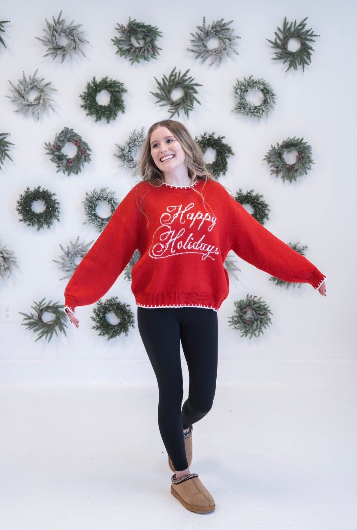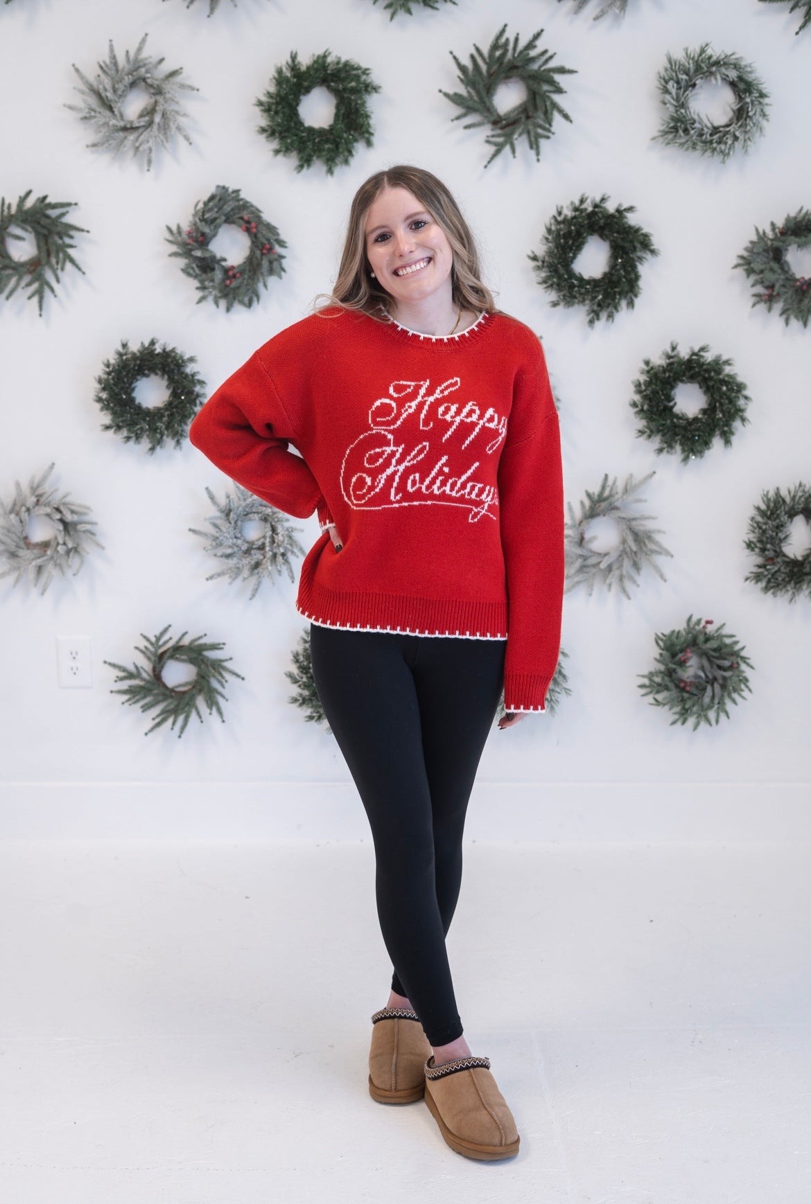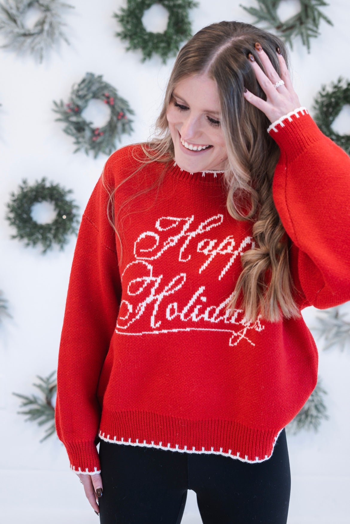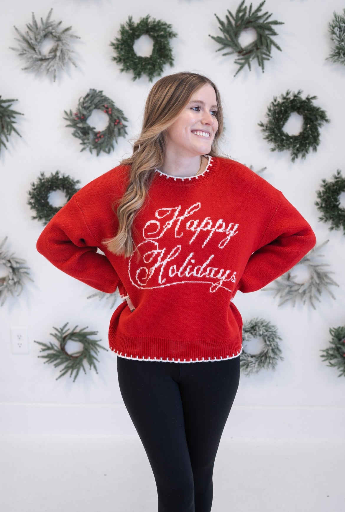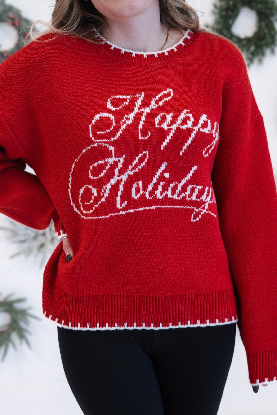 Celebrate the season in style with our Happy Holidays Graphic Sweater. This cozy long-sleeve crew neck design features festive holiday imagery that captures the warmth and joy of the moment. Perfect for holiday gatherings, casual winter outings, or layering under your favorite coat, this sweater combines comfort with seasonal charm. The classic crew neckline and relaxed fit make it an effortless addition to your winter wardrobe. Whether you're hosting a holiday party or enjoying quiet moments at home, this sweater delivers both comfort and festive spirit in one versatile piece.